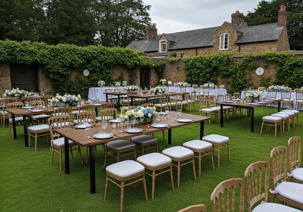 [Insert image: elegant garden party seating arrangement]