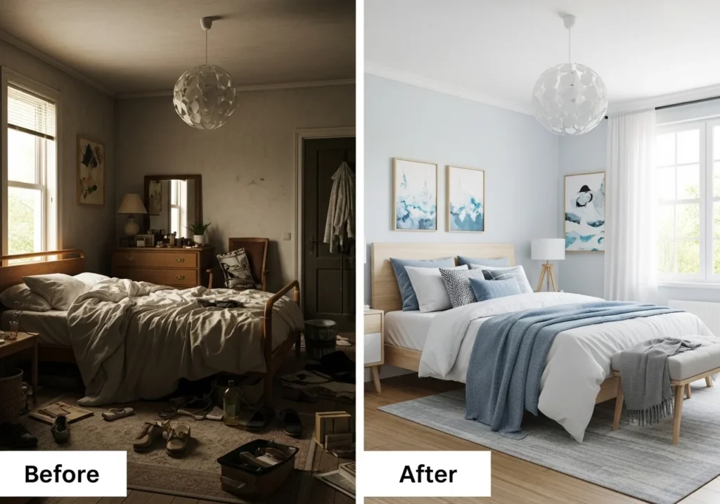 - Final Styling Touches: Add a tray on the bed, a few fresh flowers, and your favorite scented candles to finish the look.