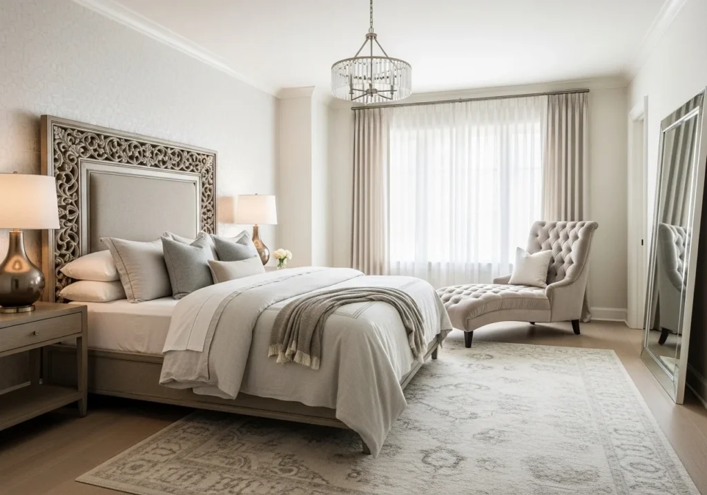 The secret to elegant bedroom decor lies in the layers. To make a space feel “expensive,” you need to pay attention to the textures and accessories that fill the room.