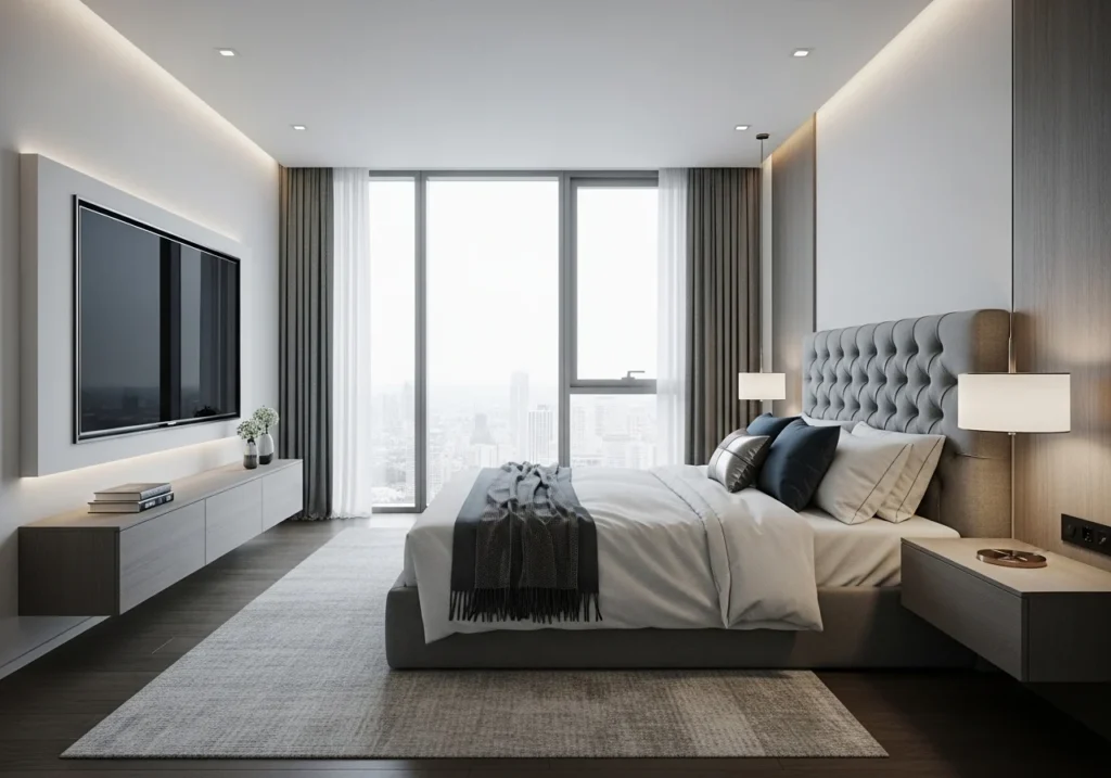 The modern luxury bedroom is all about “quiet elegance.” This style moves away from heavy, over-the-top decorations and focuses on clean lines and sophisticated finishes.